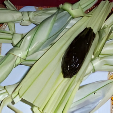 Dodol khas gorontalo yang dibungkus menggunakan daun woka
